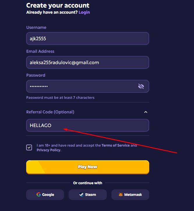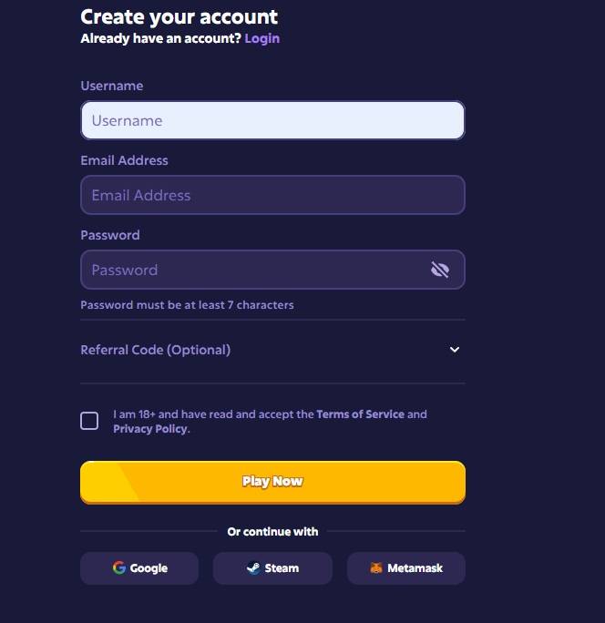 You can also register via Google, Steam, and MetaMask. This way is even faster.