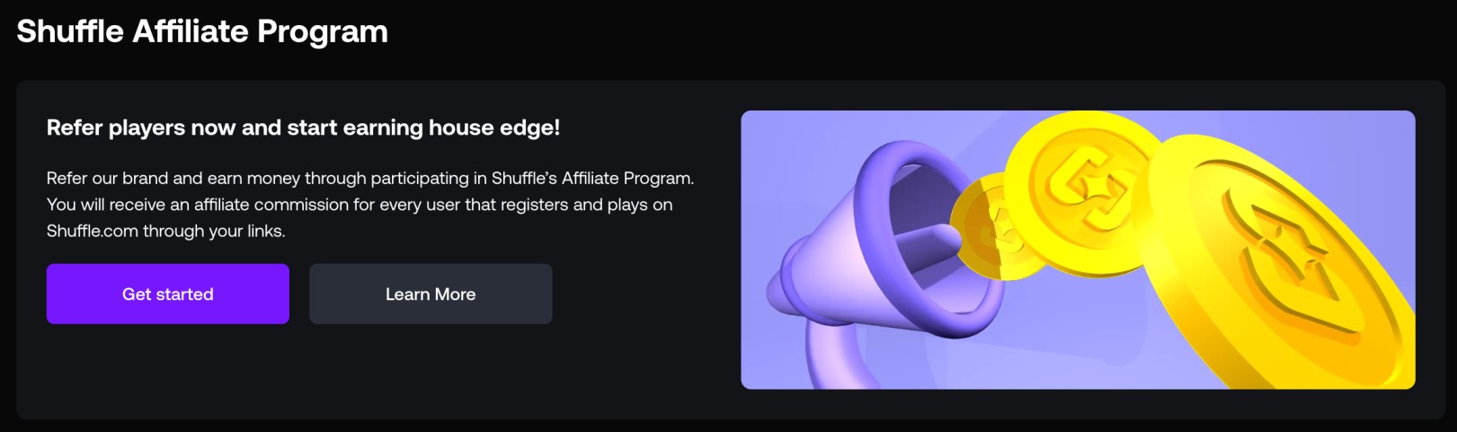 You can earn money on Shuffle Casino by inviting others to join. After signing up as an affiliate, you’ll get a bonus code. Share it with friends or online. If someone registers with your code, you earn a cut from their bets.